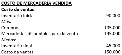 Seguidamente veamos las cuentas que constituyen y determinan el costo de ventas y su exposición en estado de ganancias y pérdidas: