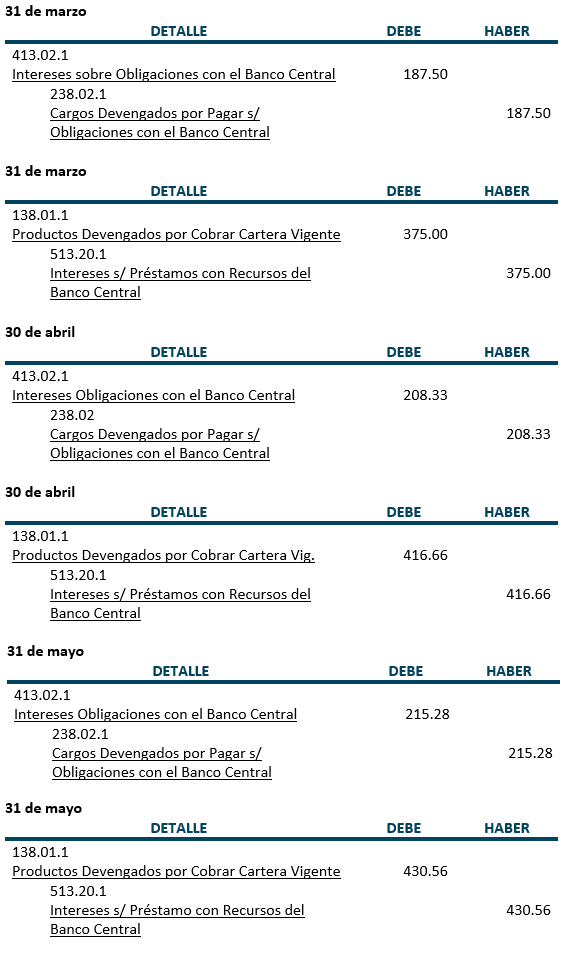El Banco de La Paz, obtiene una línea de crédito refinanciado para el sector agrícola por $ 100.000, con una tasa de interés del 5% a 180 días, amortizable cada 90 días. El desembolso se realiza a través de la cuenta corriente en el Banco Central.