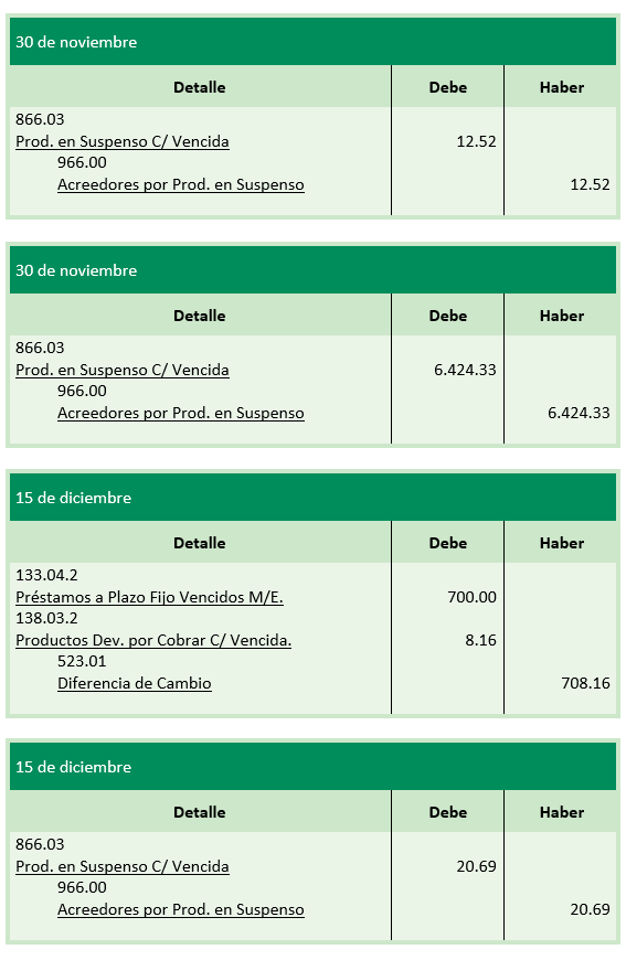 En fecha 16 de agosto Jesica Vargas obtiene un préstamo a Plazo Fijo por $US. 70.000, a 30 días plazo, con una tasa de interés de 14%. El desembolso y la cancelación se realiza en efectivo a los 132 días de vencido el crédito.