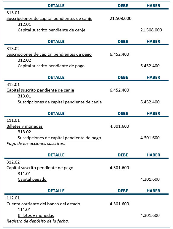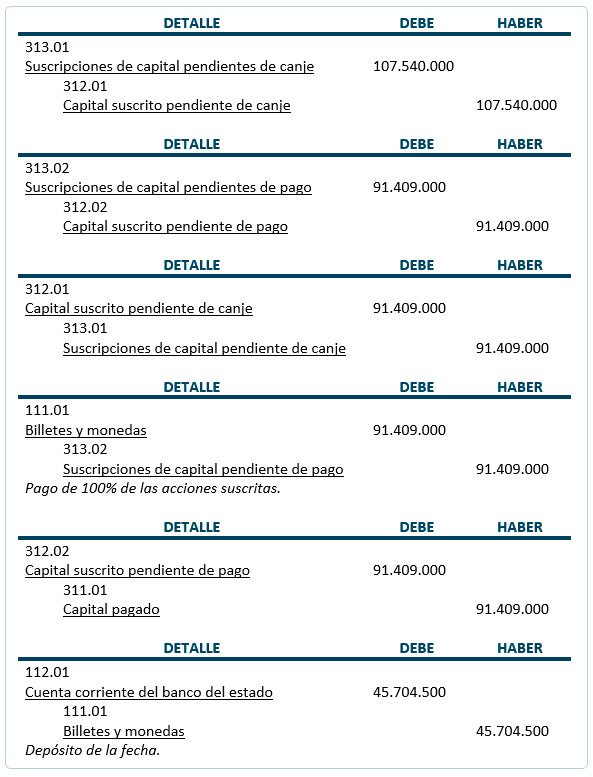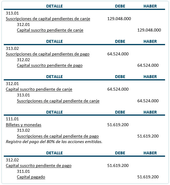 2) Los accionistas suscriben el 100% de las acciones emitidas