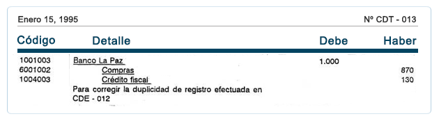 Regla: Para corregir ésta clase errores se deberá invertir el asiento duplicado, es decir, la o las cuentas abonadas deberán ser cargadas y Ia o las cuentas cargadas deberán ser abonadas con sus respectivos valores.