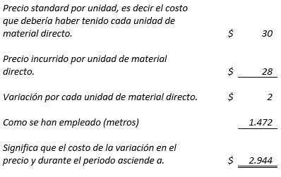 Por tanto, el costo de la variación en el precio de material directo se puede determinar mediante la fórmula: