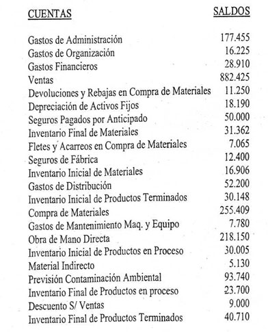 Los siguientes datos fueron proporcionados por la Empresa Industrial "EL PALMAR" SA correspondiente al mes de marzo del año 2010: