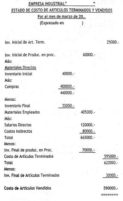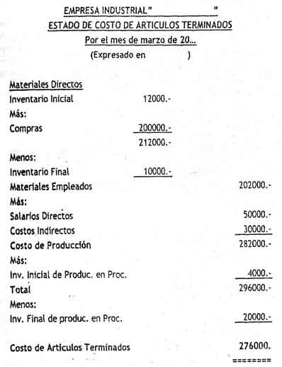 - Estado de Costo de Artículos Terminados o Manufacturados
