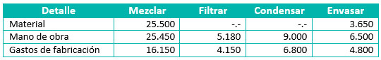 - Condensar: 1.000 galones en un 60% de acabado respecto a mano de obra y gastos indirectos de fabricación con un costo de $ 5.872.