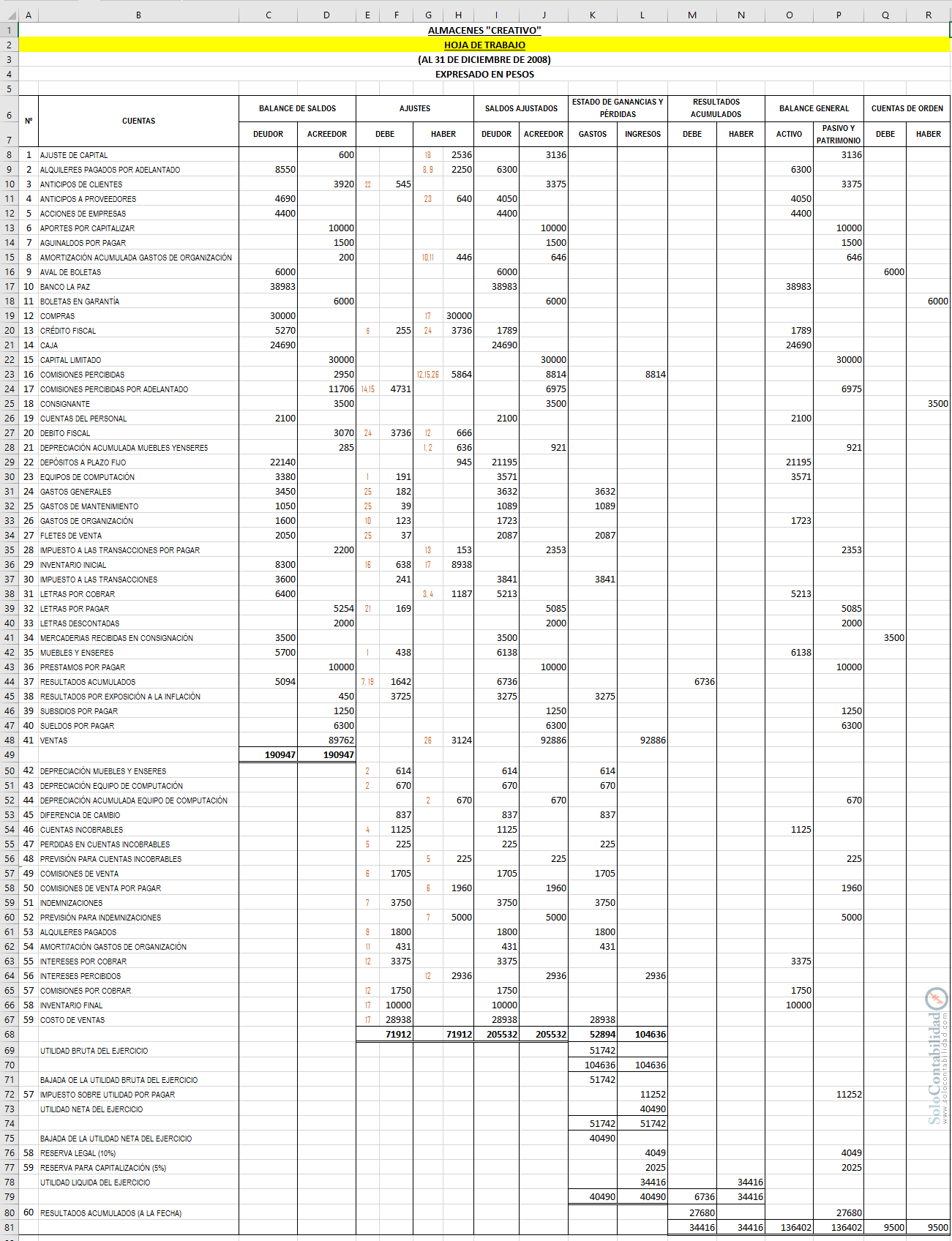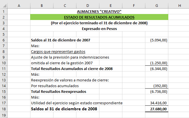 El Balance General de Almacenes “Creativo” al 31 de diciembre de 2007 es: