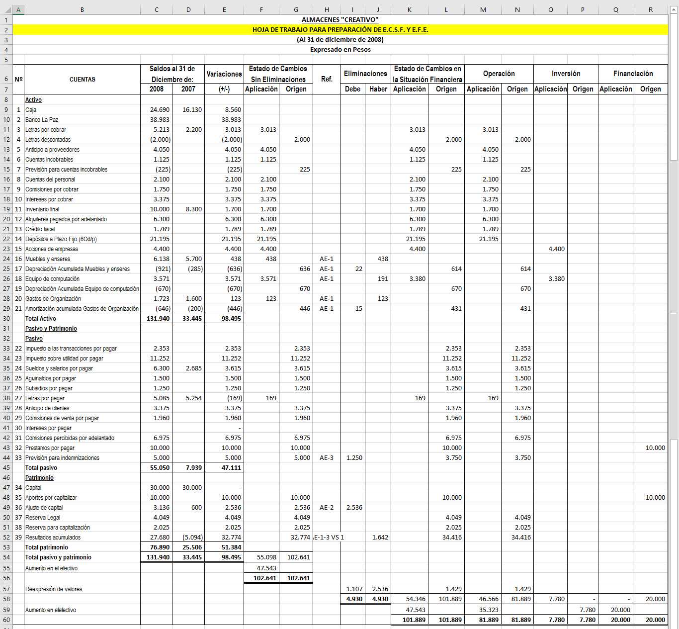 VII. Hoja de Trabajo Preparatoria de E.C.S.F y Flujo de Efectivo: