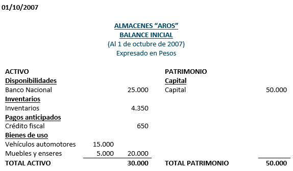 05 de octubre de 2007: Se compra 400 unidades de radios AKITA cada uno a $ 140 según factura Nº 987 de Importadora “Los Malvados”, cancelándose el 30% con cheque Nº 100 del Banco Nacional y por el saldo se suscriben dos pagares a 30 y 60 días plazo respectivamente.
