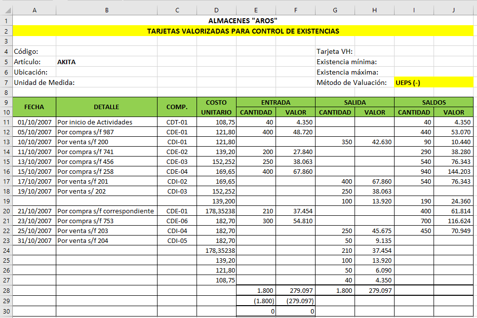 - Tarjetas de control de inventarios (PEPS, UEPS, CPP)
