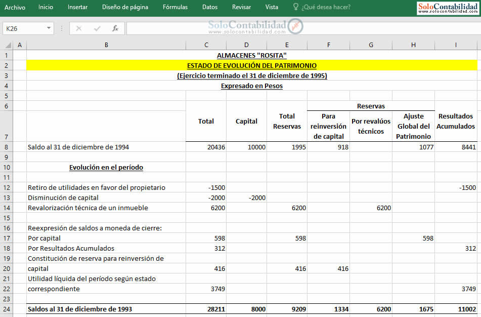 Por tanto: después de cumplir con procedimientos contables (registro de diario, mayores, etc.), la composición patrimonial de Almacenes “Rosita” al 31 de diciembre de 1995, es: