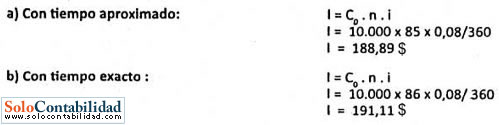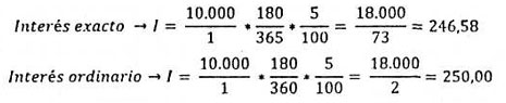 De acuerdo con este procedimiento. Por ejemplo el interés correspondiente a $ 10.000 prestados a 5% durante 180 días, se calcula de la manera siguiente: