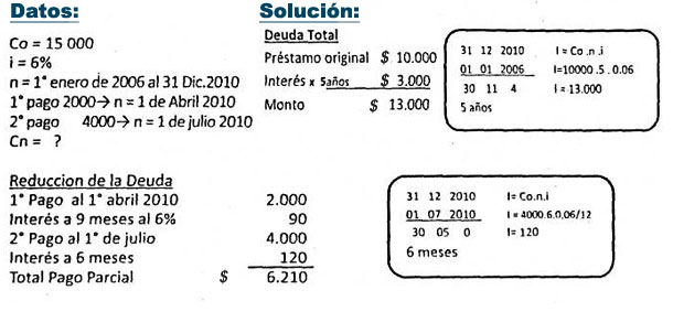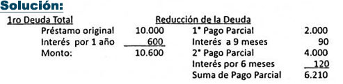 Ejemplo 35: Una deuda de $ 10.000 fechado el 1° de enero y a cuenta del cual se hicieron los siguientes pagos parciales.