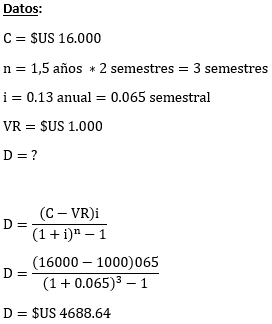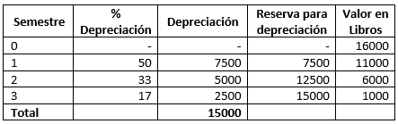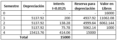 Ejemplo. La empresa Omega tiene un activo (maquinaria), cuyo valor es de $us 16.000, se calcula una vida útil de 1,5 años y el valor residual se estima en $US 1.000.