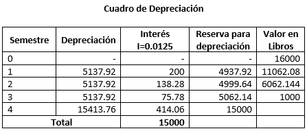 1.1) Determinar la depreciación al final de cada semestre utilizando el método directo y construir el cuadro de depreciación.