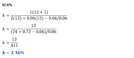 3. En el plan del 6% descrito en el problema 2; si el plazo de duración del contrato sería superior a un año el porcentaje adicional se incrementará en forma proporcional. Por tanto, si los pagos mensuales se tendrían que realizar, el valor de cada pago se determinaría dividiendo el 109% del saldo inicial impago entre 18. Si consideramos la utilización del método de la tasa constante encuentre usted la verdadera tasa de interés que se está cobrando en este caso.