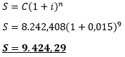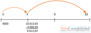 Al importe capitalizado de $ 10.613,63 se resta el retiro de $ 4.000. El nuevo importe obtenido se capitaliza por los siguientes 8 meses.
