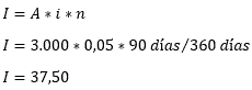Respuesta: El interés que cobrará el vendedor al vencimiento en $ 37,50. El monto final de la letra será: