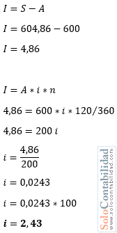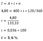 El interés de la letra de cambio de $ 400 a 120 días plazo fue del 3,6 %.